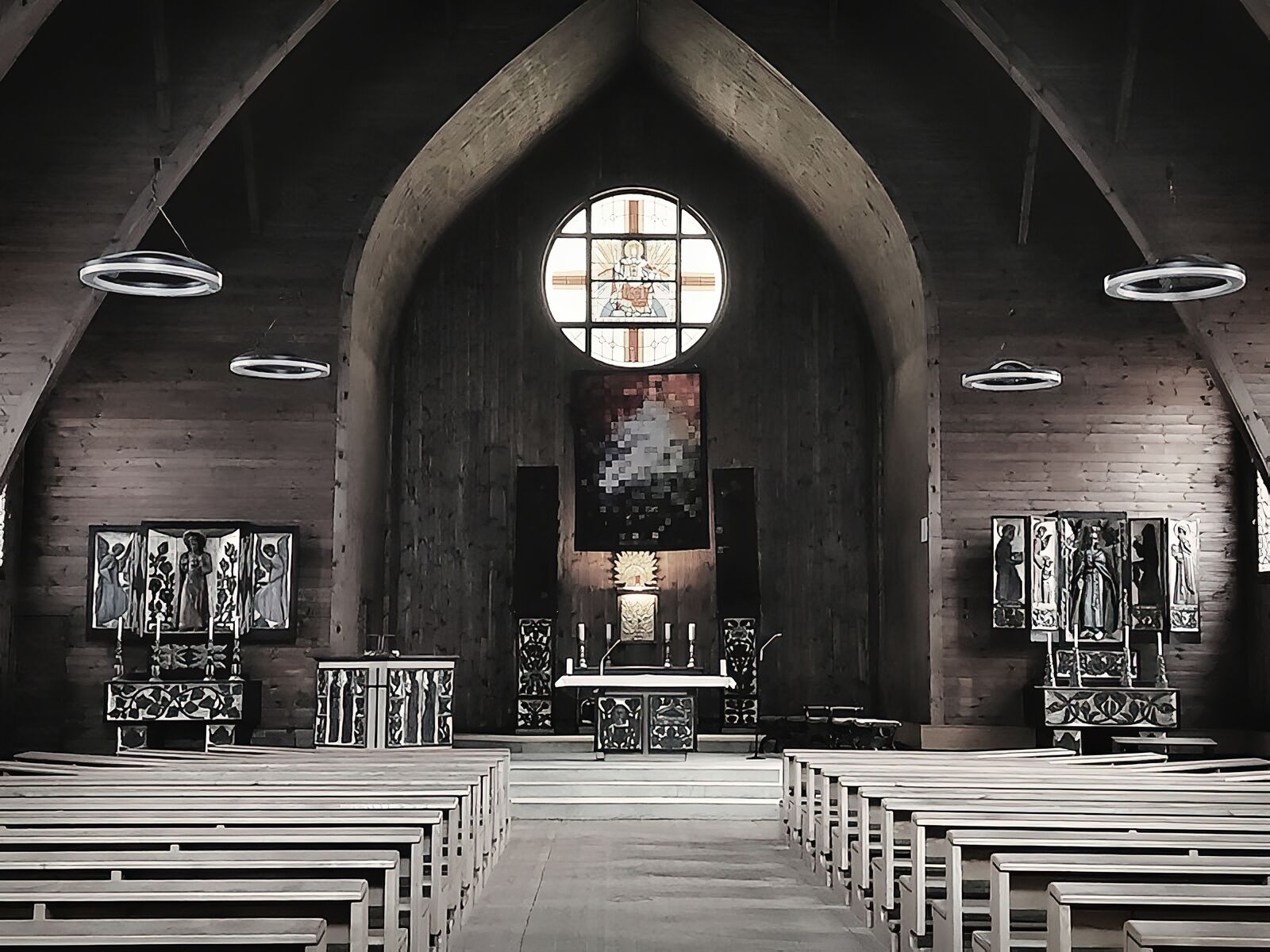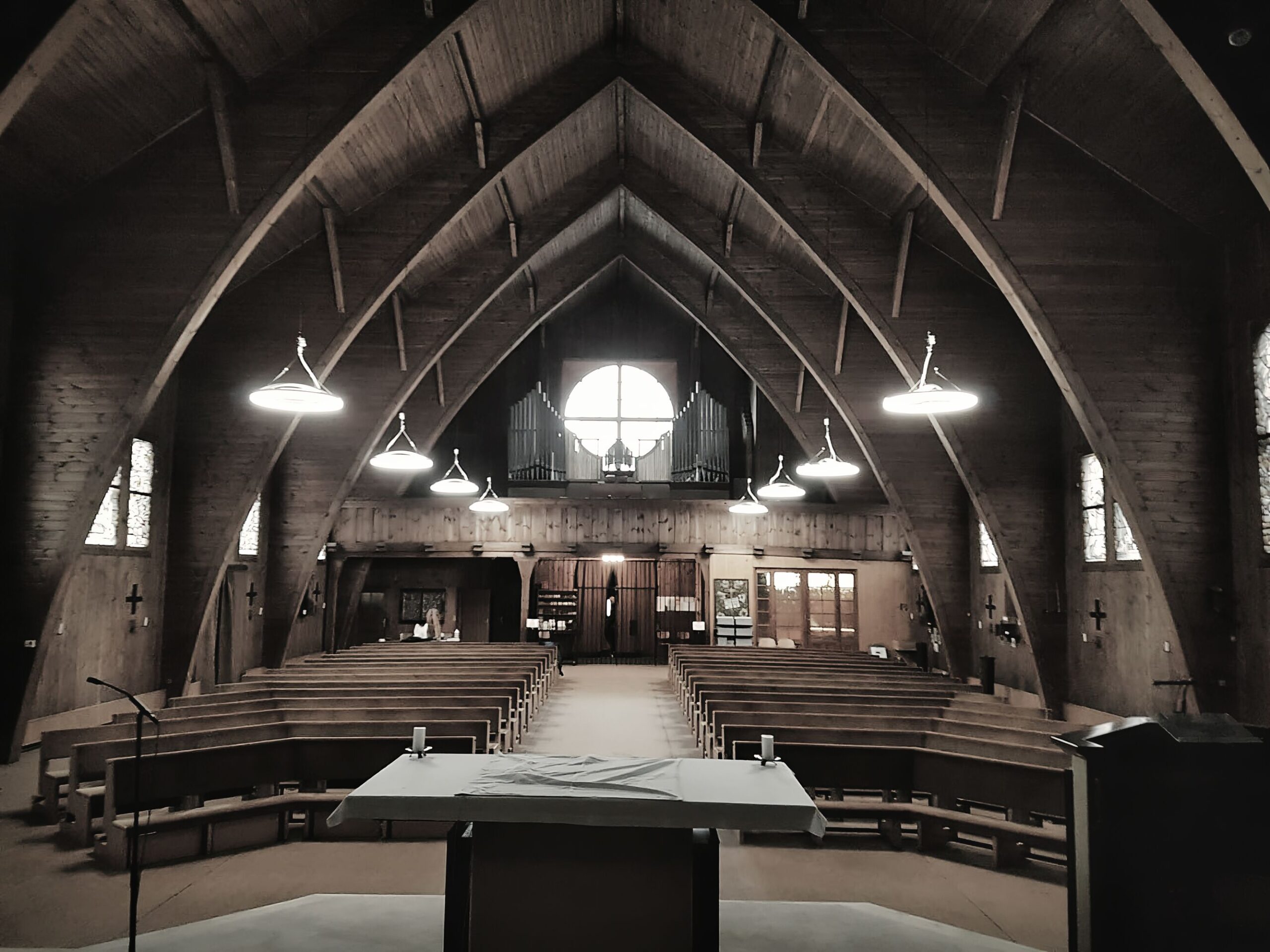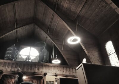 Das bisherige Beleuchtungskonzept dieser besonderen Kirche war veraltet. Es verursachte hohe Wartungskosten und die die schlichte Perfektion der Architektur kam zu wenig zur Geltung. Es wurde eine grundsätzlich andere Lösung gesucht unter der Prämisse geringer Installationskosten und hoher Flexibilität. Die Entscheidung fiel auf einen Leuchtentyp mit automatischer Steuerung. Mit dieser ist jederzeit das Beleuchtungsniveau veränderbar, Leuchtengruppen können jederzeit gebildet, bzw verändert werden.
