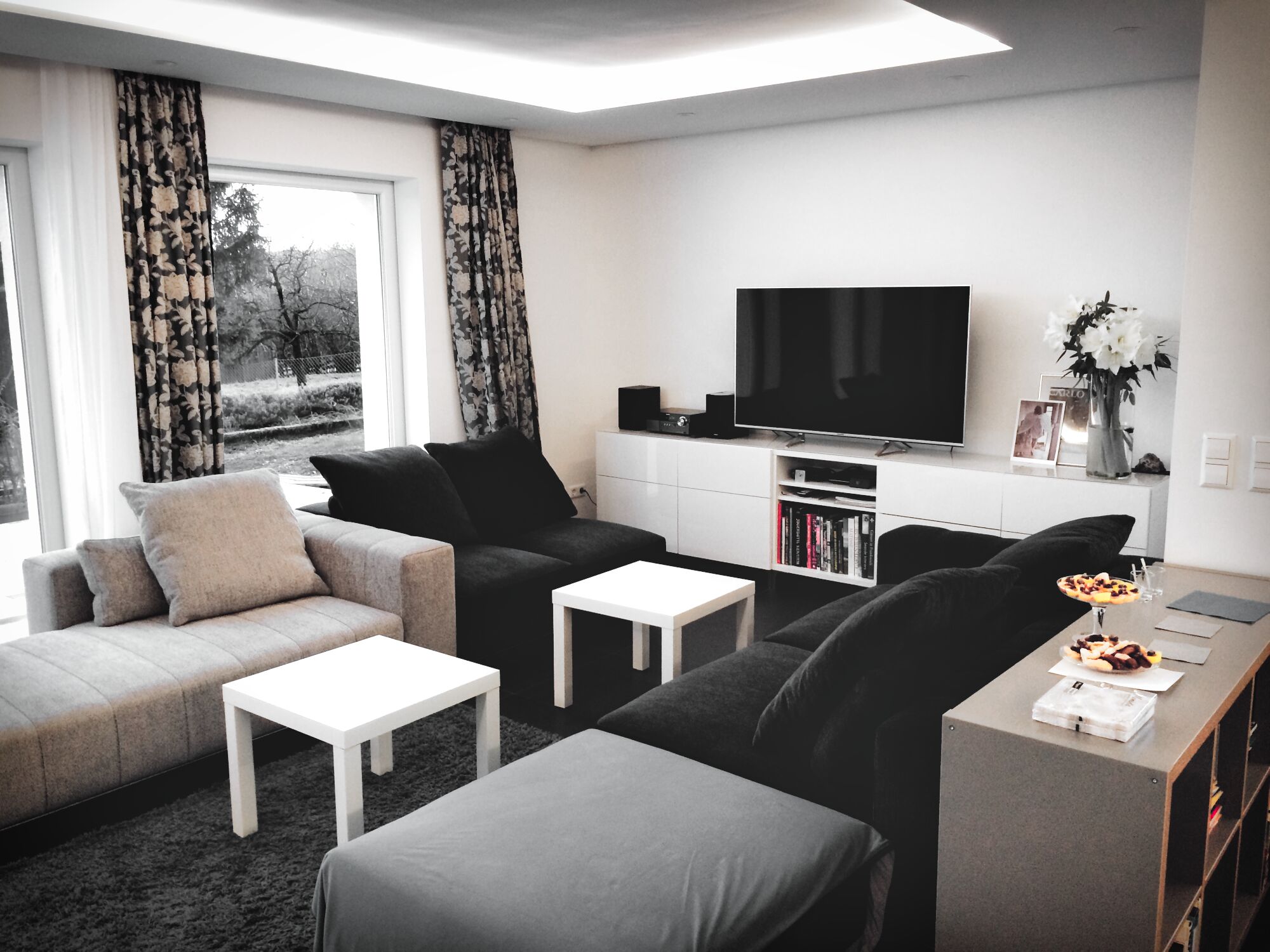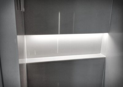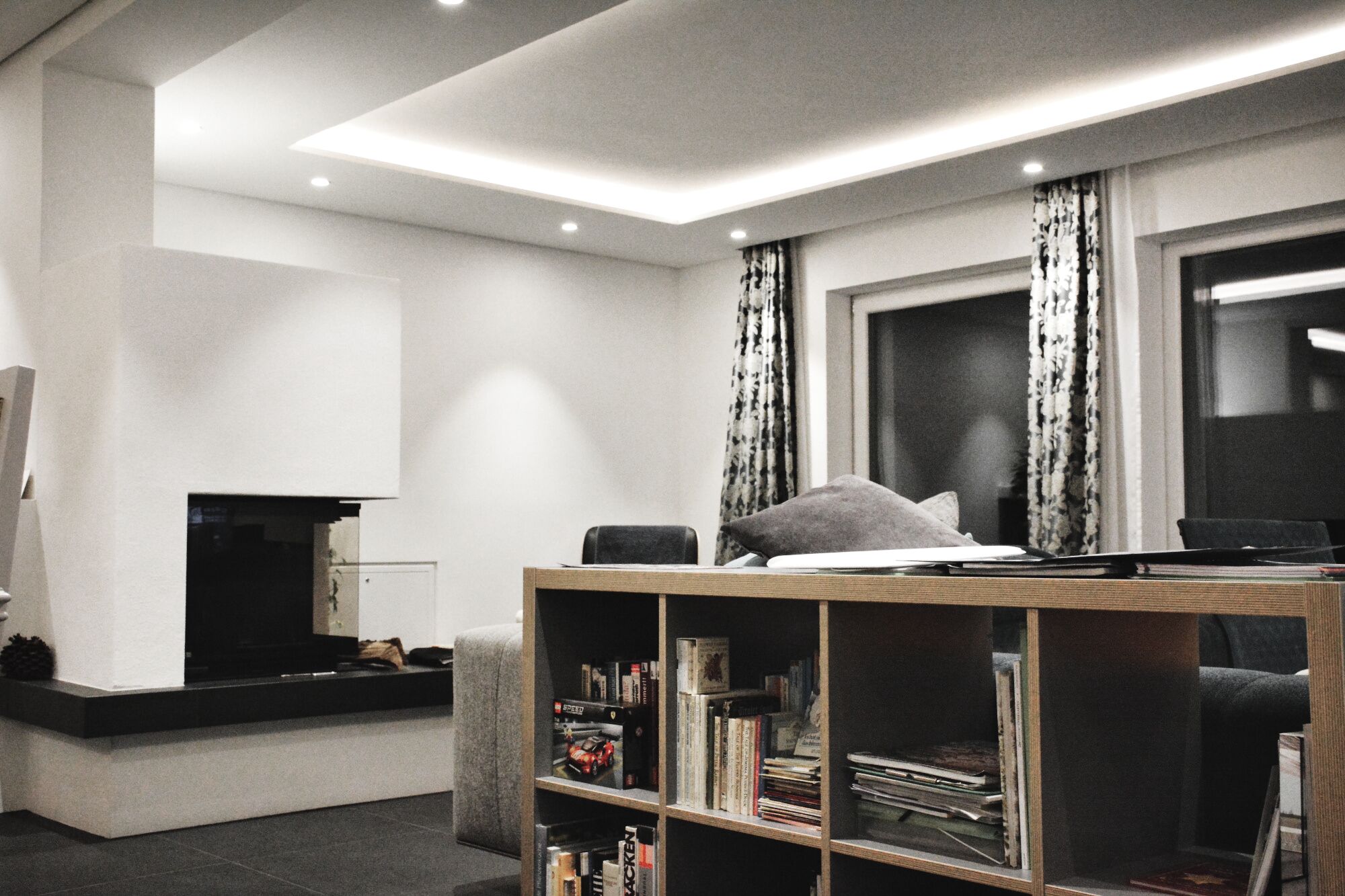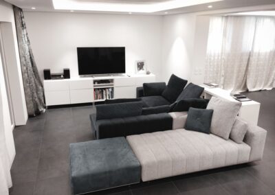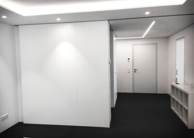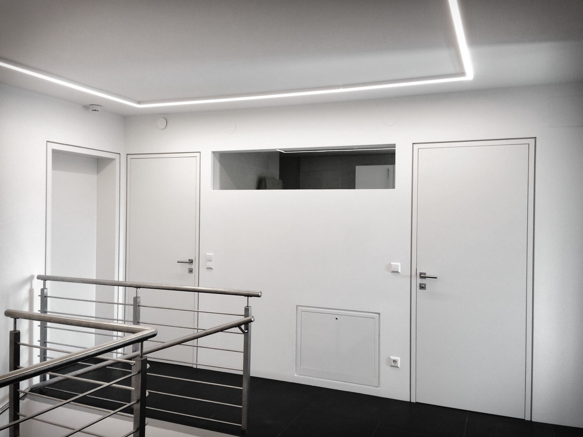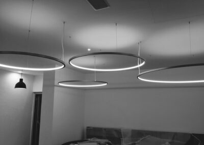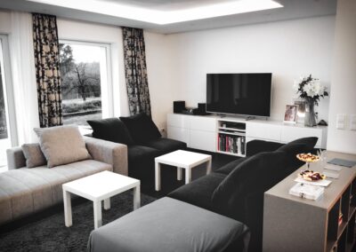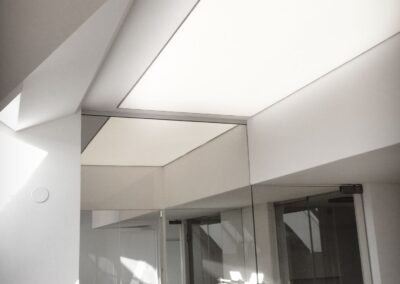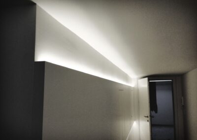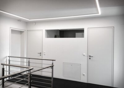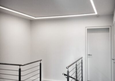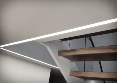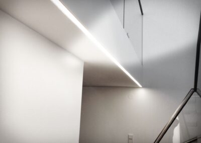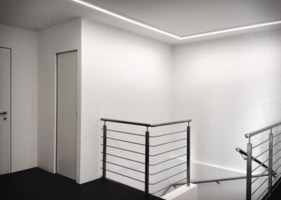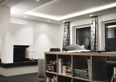 Die Hausbesitzerin leidet unter starker Migräne und ist dadurch sehr lichtempfindlich. Das größtes Augenmerkt bei der Erstellung des Beleuchtungskonzepts wurde daher auf die Vermeidung von Blendungen gelegt. Wo es möglich war wurden indirekte Beleuchtungsszenarien umgesetzt.