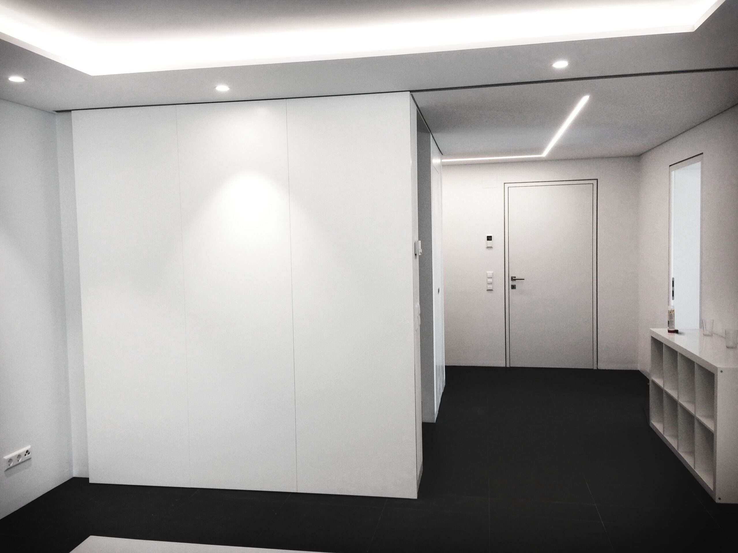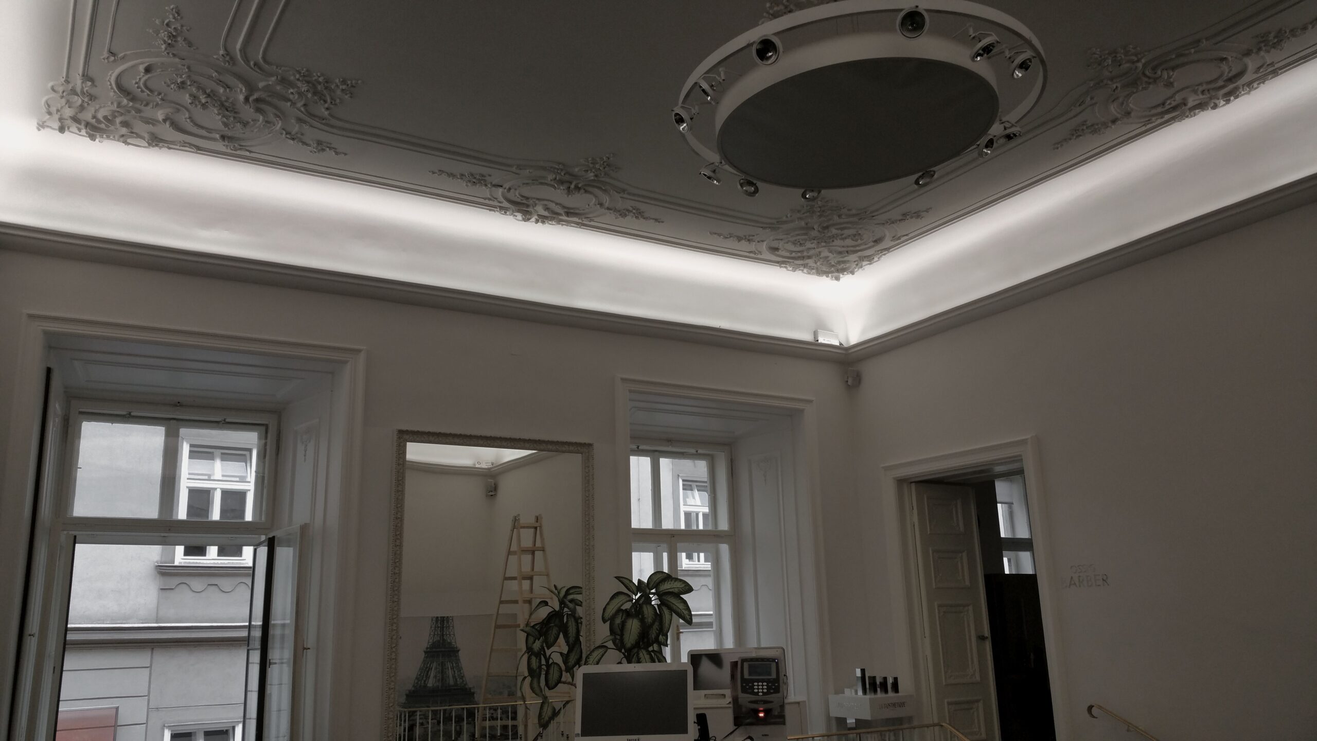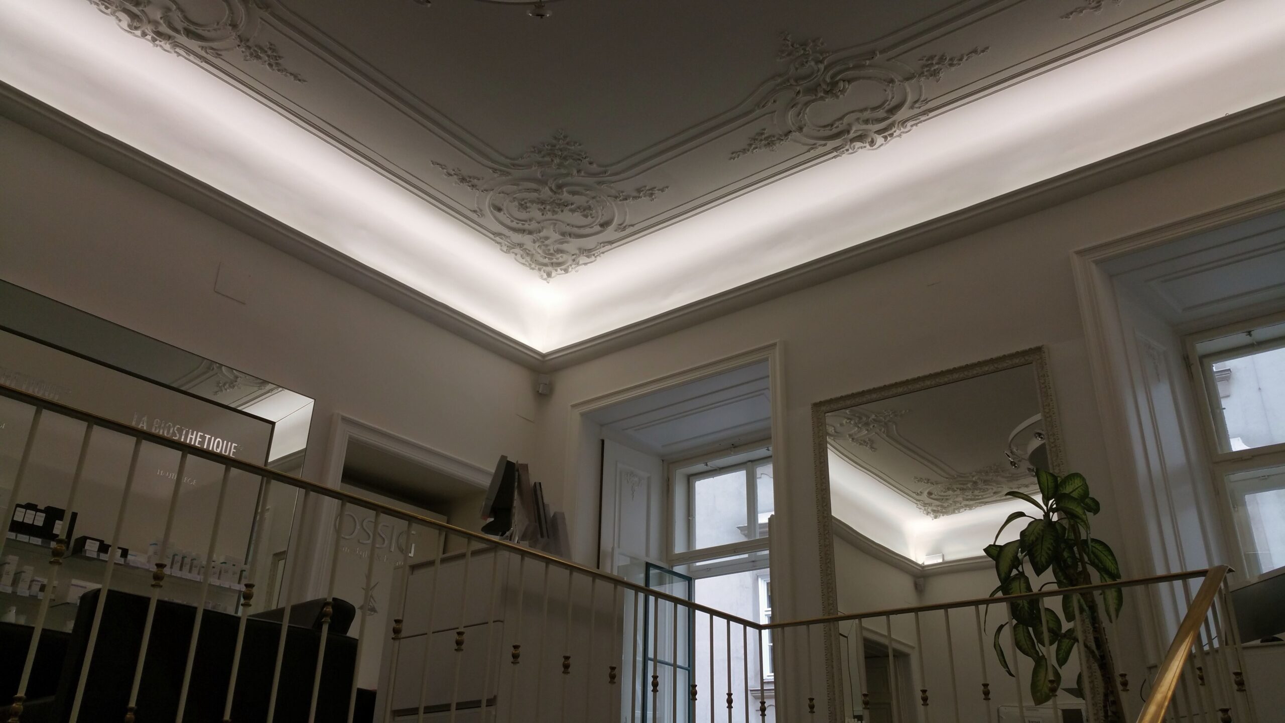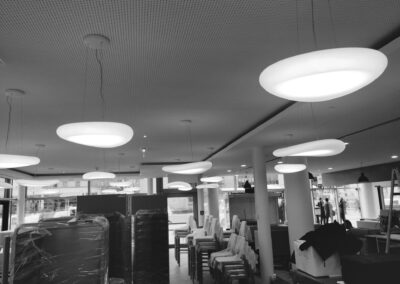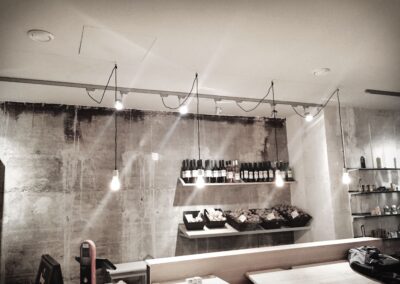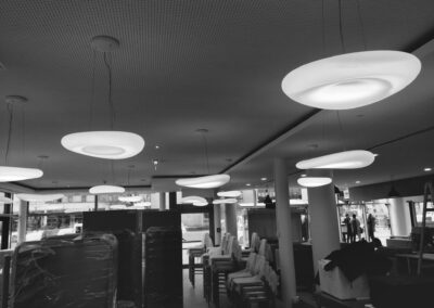 Passend zur Umgebung in der sich das Geschäftslokal befindet, sollte eine minimalistische und moderne Beleuchtungslösung geschaffen werden. Die Qualität der Beleuchtung im Sinne von Farbechtheit, Lichtfarbe und Wohklfühlfaktor hatte jedoch oberste Priorität.